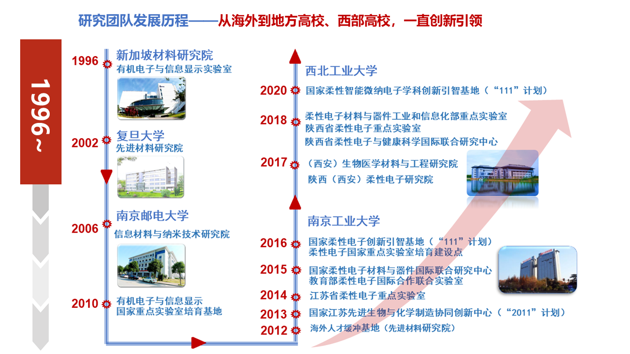 2017年4月,黄维院士投身到祖国西部的建设中,西北工业大学柔性电子研究院(Institute of Flexible Electronics, IFE)成立,力图通过颠覆性技术,打造高端科技智库,服务国家西部大开发重大战略。近两年,研究院已先后获批建设柔性电子材料与器件工信部重点实验室、陕西省柔性电子重点实验室、西安市柔性电子重点实验室、西安市柔性电子工程技术研发中心、国家柔性智能微纳电子学科创新引智基地(“111”计划)等研究平台。