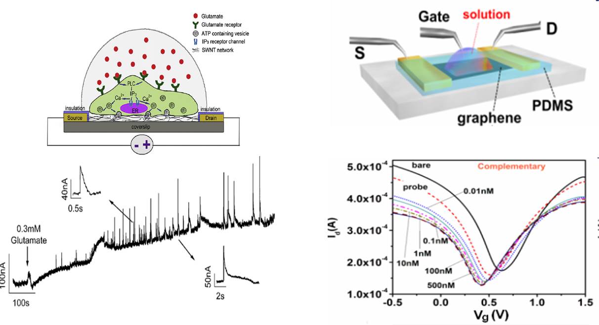Ø Graphene, carbon nanotube, and organic semiconductors based bio-sensors to detect DNA, E. Coli, proteins, etc.