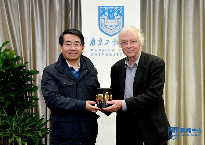 In the end of the meeting, President and Academician Huang Wei presented a souvenir to Prof. Huber. What's more, Prof. Huber will cooperate with NanjingTech to construct a Health Institute temporarily named as "Huber-Huang Health Institute (H3I)" which will promote the rapid development of NanjingTech on the fields of Health Science.