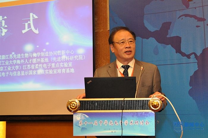 The 11th Chinese Optoelectronics Symposium was solemn held in Nanjing Tech University on 17th December, 2015. This Symposium was organized by Nanjing Tech University in association with the National Collaborative Innovation Center of Jiangsu Advanced Biological and Chemical Manufacturing, Buffer Base for Overseas Talents (Institute of Advanced Materials) of Nanjing Tech University, Key laboratory of Flexible Electronics in Jiangsu province and Key Laboratory for Organic Electronics & Information Displays (KLOEID). The chairs of the Symposium are Academician Chu Junhao, researcher of the Shanghai Institute of Technical Physics of the Chinese Academy of Sciences, and Academician and President Huang Wei while the co-chairs are Prof. Huang Ru from Peking University and Prof. Zhang Rong from Shandong University.
