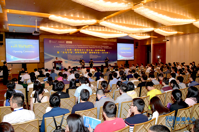 "Flexible electronics is the frontier field of the international science and technology rapid rising in recent years. It can satisfy the expanding needs of wearable intelligent device, real-time health monitoring, clean energy and so forth. Flexible electronics is expected to become one of the pillar industries in the national economic development and science and technology progress," said in the opening ceremony by Academician and President Huang Wei who is the chair of Nature Conference on Flexible Electronics-Challenges and Opportunities & International Symposium on Optoelectronics, Materials, and Energy (iSOME-2016). Director of the department of science and technology of Jiangsu province Wang Qin, Party secretary of Jiangsu Association for Science and Technology Chen Huijuan, deputy director of Education Department of Jiangsu Cao Yumei, Dr. Karl Ziemelis from Nature Publishing Group, Dr. Joanne Baker from Nature Publishing Group and other leaders attended the opening ceremony.