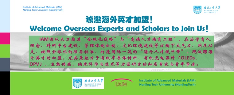 IAM团队大力推进“全球化战略”与“高端人才培育工程”,在治学育人理念、科研平台建设、管理体制机制、文化环境建设等方面下大气力、用足功夫,按照全球化的服务标准、打造国际一流的“海外人才缓冲带”。现诚聘海外英才的加盟,尤其是致力于有机半导体材料、有机光电器件(OLEDs、OPV)、生物传感、纳米科学与技术等方面研究的知名专家与青年学者。