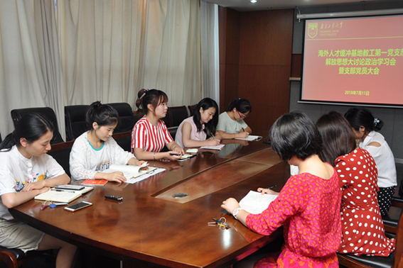 7月11日下午,海外人才缓冲基地教工第一党支部在科技创新大楼C503室召开解放思想大讨论政治学习会暨支部党员大会。会议由支部书记朱纯欣同志主持。