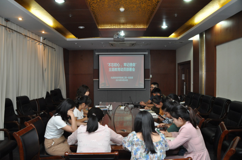9月24日下午, 先进材料研究院教工第一党支部在科技创新大楼 C503 室召开“不忘初心、牢记使命”主题教育动员部署会。支部全体党员参会,会议由支部书记朱纯欣主持。