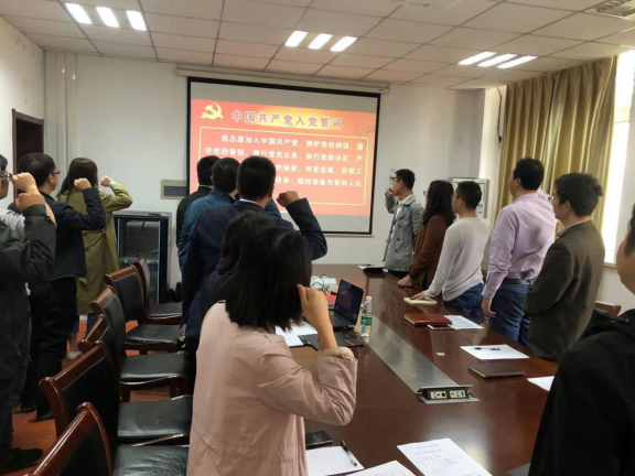 张仕明从“不忘初心、牢记使命”主题教育工作会议简介、主题教育工作会议内容学习解读、习总书记讲话的十大金句、习近平总书记谈如何“守初心 担使命 找差距 抓落实”四个角度向与会的党员同志介绍了本次主题教育的意义及内容,结合本支部的工作实际情况和调研情况,深刻剖析了先进材料研究院教工第二党支部的学习教育情况和党建中的不足之处,表示会迎难而上,努力做好支部主题教育工作,争做样板党支部,服务好师生群众,充分发挥党支部的战斗堡垒作用。党课期间,张仕明带领大家一起重温了入党誓词。