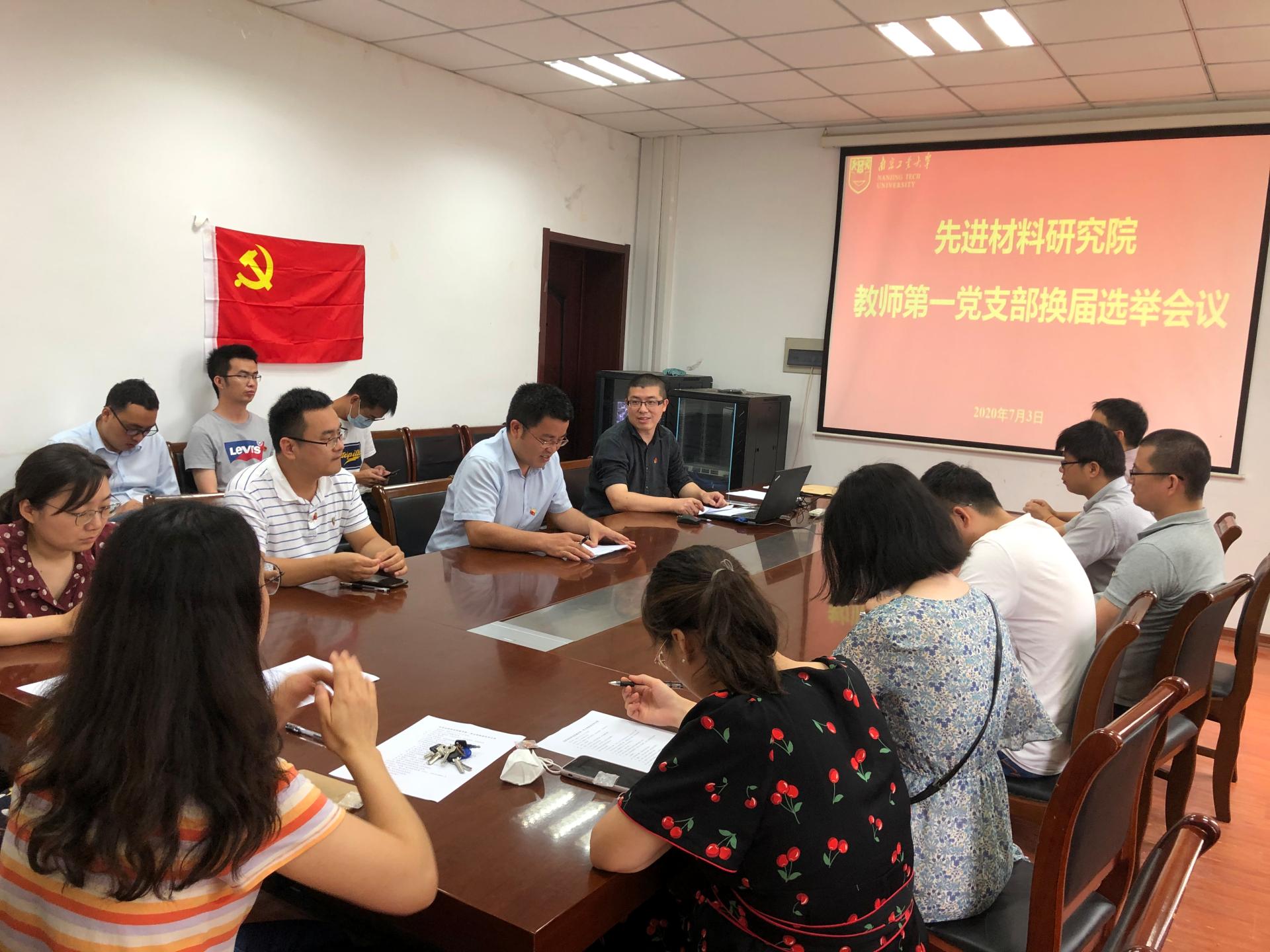7月3日,先进材料研究院教师第一党支部换届选举大会在化工实验楼316会议室顺利召开。会议由邵进军同志主持,公司党委副书记刘举庆同志、兼职组织员杨阳同志和支部全体党员参加了会议。