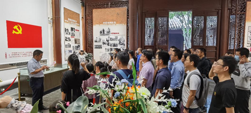 在新四军一支队司令部旧址,大家跟随讲解员的脚步深入了解了当年陈毅司令员率领新四军一支队抗日救亡的光辉历史。全体党员同志认真学习了“一支队简介”、“陈毅初抵高淳”、“老百姓队伍”、“抗日民主政府”等历史知识,仔细观看了相关的历史照片以及陈列的众多抗战文物。大家被一个个抗日故事所感动,被革命先烈们的革命奉献精神以及高尚爱国主义情怀所震撼。在新四军一支队司令部旧址的陈毅司令员铜像面前,全体党员同志向陈毅元帅敬献鲜花,并重温入党誓词,深切缅怀革命先烈,更加坚定了为中国特色社会主义事业奋斗终身的理想信念。