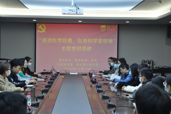 11月17日下午,太阳成集团tyc行政党支部成功举办“诵读科学经典、弘扬科学家精神”主题党日活动暨党支部结对共建活动。活动由行政党支部书记朱纯欣主持,行政党支部与院硕士第六党支部全体党员参加了活动。