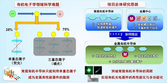 据介绍,有机半导体的研究归属于有机光电子学科旗下,是信息领域的一门新兴交叉学科。近年来,有机光电子学对材料、信息、生命、能源等多个国民经济关键环节产生了重要影响。此项成果发现金属有机半导体在金属原子旋轨耦合作用下,可同时利用单重态和三重态激发态,且具有优异的电学性质。成果具体体现在三方面,一是围绕金属有机半导体的高性能化,提出高性能金属有机半导体结构设计新原理,提高了有机发光二极管效率;二是围绕金属有机半导体的多功能化,发展智能响应型金属有机半导体,实现了高密度和高安全性信息存储;三是发现金属有机半导体的高灵敏“信息传感”功能,利用长寿命三重激发态,通过时间分辨光学技术提高生物信息传感信噪比。