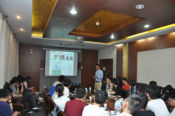 会上,海外人才缓冲基地(先进材料研究院)霍峰蔚、李林、陶友田、Mustafa等课题组代表分别介绍了团队围绕金属有机骨架材料、双光子荧光分子探针、有机电子学等方向的研究概况。李盛、张承武、张伟娜等教师代表分别介绍了自身学习和研究经历,提出希望2011公司光电专业本科生们扎实基础、广泛学习,培养科研兴趣,探索科学奥秘。潘婷等硕、博士研究生代表分享了从2011公司到先进材料研究院的学习经历。