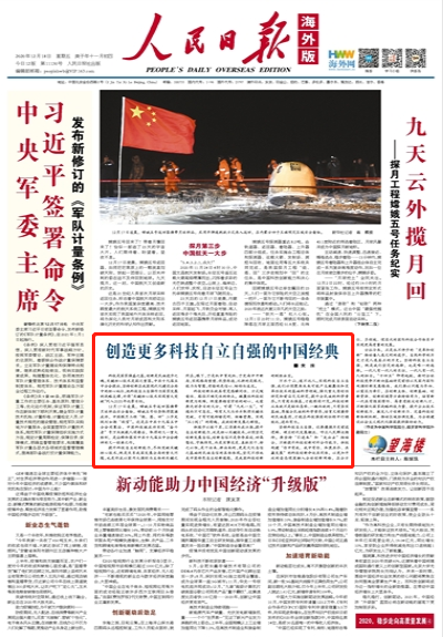 链接:http://paper.people.com.cn/rmrbhwb/html/2020-12/18/content_2024507.htm《 人民日报海外版 》( 2020年12月18日 第 01 版)