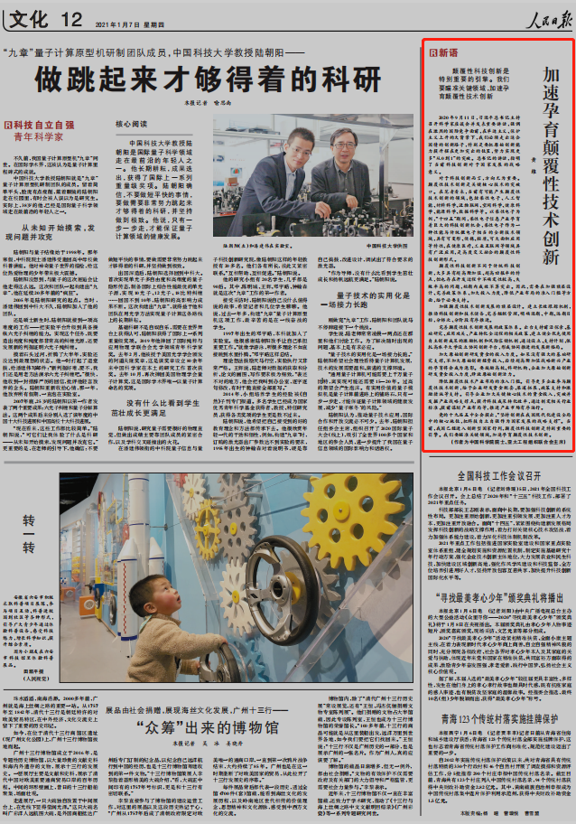 党的十九届五中全会提出,“坚持创新在我国现代化建设全局中的核心地位,把科技自立自强作为国家发展的战略支撑”。当前,我国已经进入创新型国家行列,颠覆性科技创新是特别重要的引擎。我们要瞄准关键领域,加速孕育颠覆性技术创新。