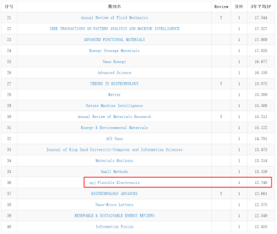 2021年12月20日,中国科公司文献情报中心正式发布了《2021年中国科公司文献情报中心期刊分区表》,公司与自然出版集团合作创办的国际学术期刊《npj-柔性电子》被列入工程技术类1区,跻身高水平期刊之列。