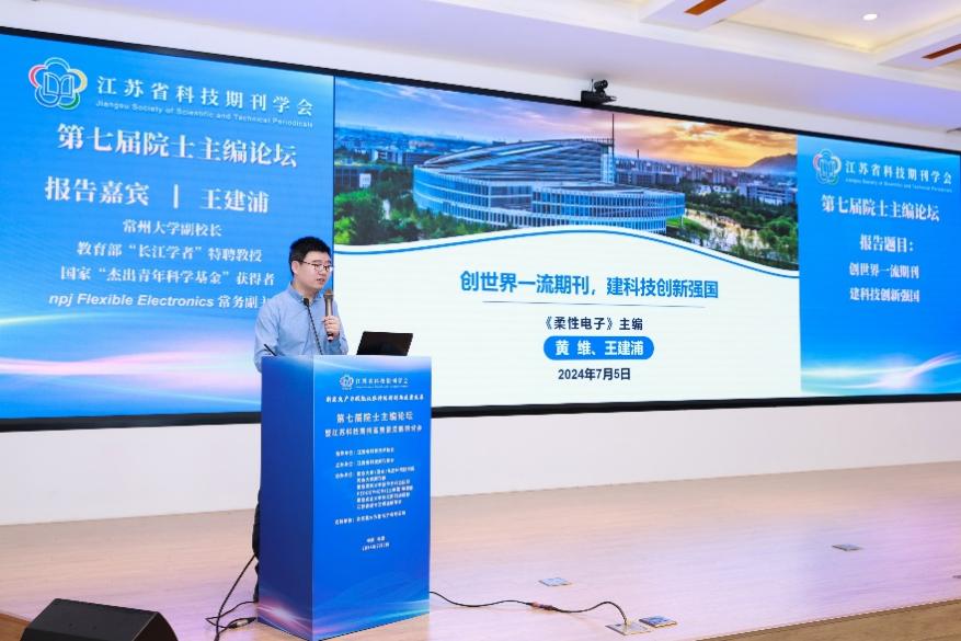 7月5日,第七届院士主编论坛暨江苏科技期刊高质量发展研讨会在南京举办。《柔性电子》(npj Flexible Electronics)主编黄维院士线上参会,常务副主编王建浦教授出席了本次论坛。