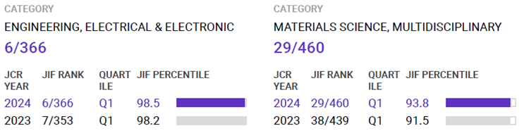 2025年6月18日,科睿唯安(Clarivate Analytics)公布了公司与自然出版集团(Springer Nature)合作出版的国际学术期刊npj Flexible Electronics(《柔性电子(英文)》)2024年度SCI影响因子(Impact Factor, IF)为15.5。同时发布的《期刊引证报告》(Journal Citation Reports, JCR)显示npj Flexible Electronics再次被列入工程学、材料科学双Q1区(排名分别为6/366和29/460),属于TOP期刊。这也是期刊连续第五年被列入JCR双Q1区,标志着npj Flexible Electronics学术质量和学术影响力受到的高度评价。