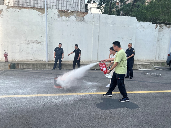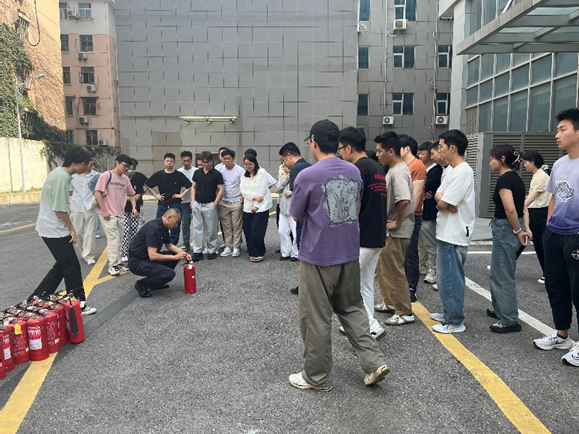 活动伊始,张思宇老师结合高校实验室和宿舍安全特点,通过真实案例剖析,详细讲解了火灾成因、初期扑救方法、疏散逃生技巧及消防器材使用规范。随后,活动转移至D楼东广场开展演练活动。保卫处保安大队葛磊队长首先介绍了D楼手报的使用方法和D楼烟雾报警器的正确使用状态,然后依次进行防毒面罩、灭火器等消防设施的使用讲解,并分组进行了实战灭火演练,每个人都亲自体会了“一提、二拔、三握、四压”的灭火感受。