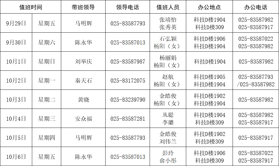 根据公司相关文件要求,公司中秋节、国庆节值班工作安排如下: