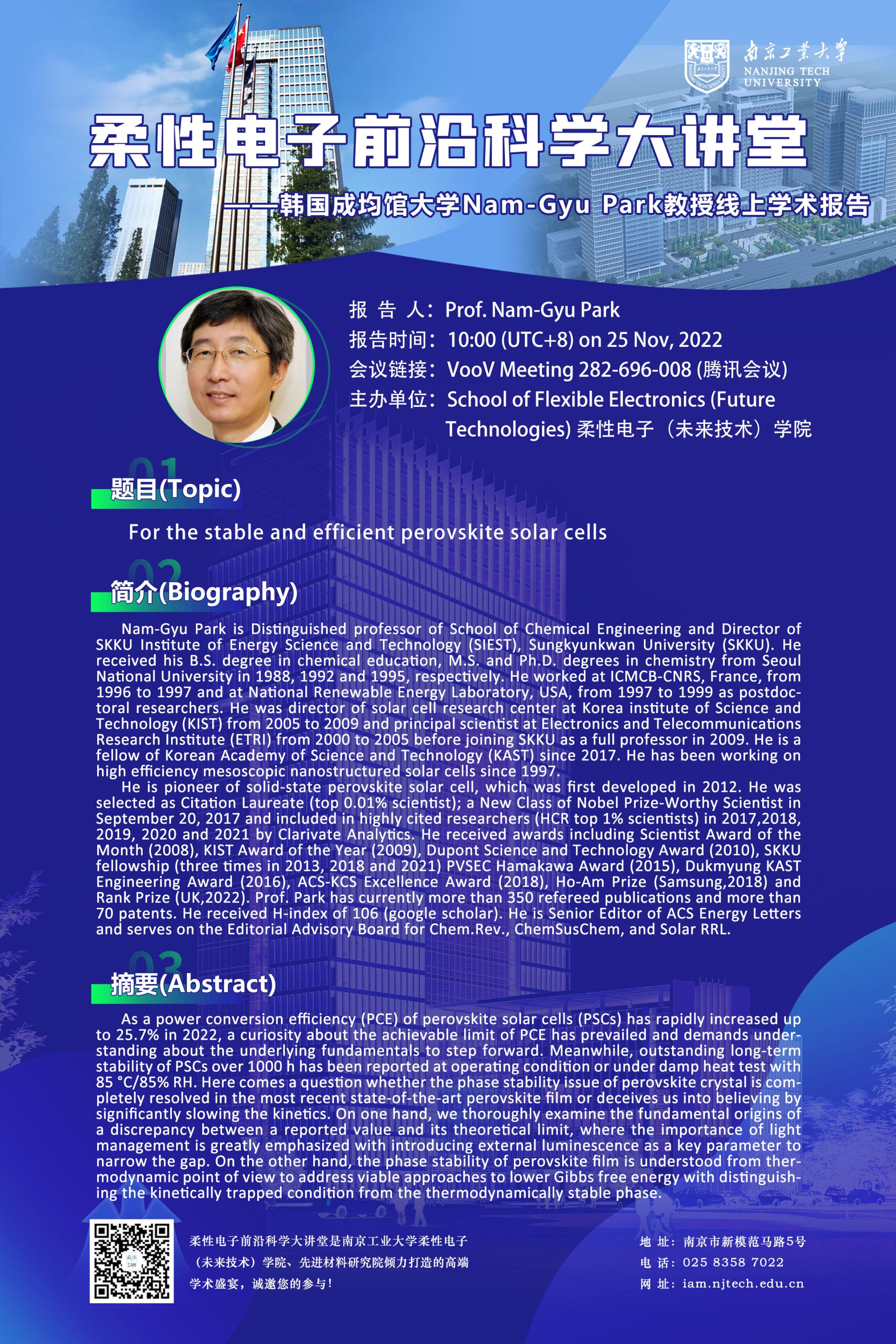 【柔性电子前沿科学大讲堂】第5期:韩国成均馆大学Nam-Gyu Park教授