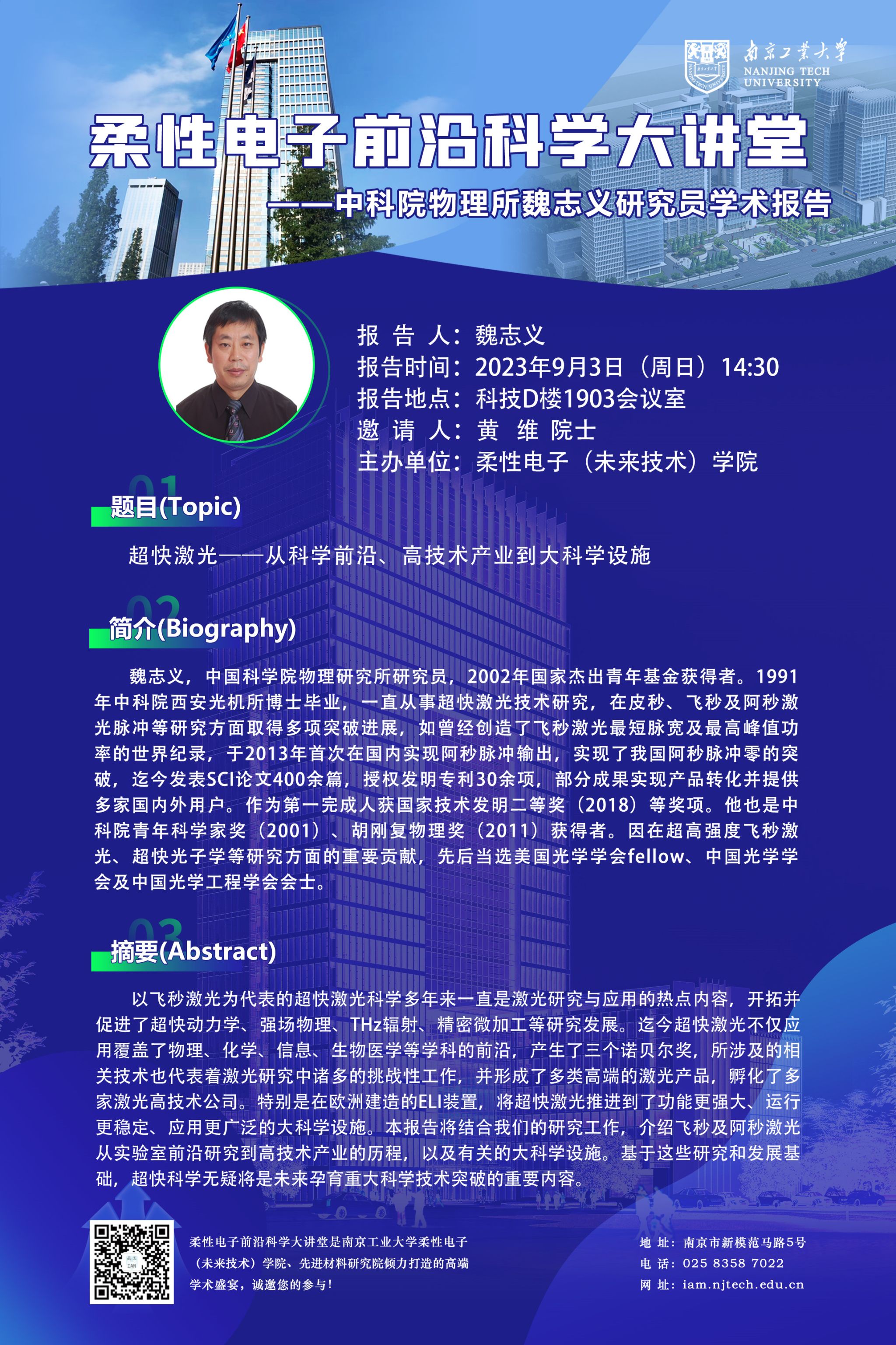 【柔性电子前沿科学大讲堂】第7期:中国科公司物理研究所魏志义研究员