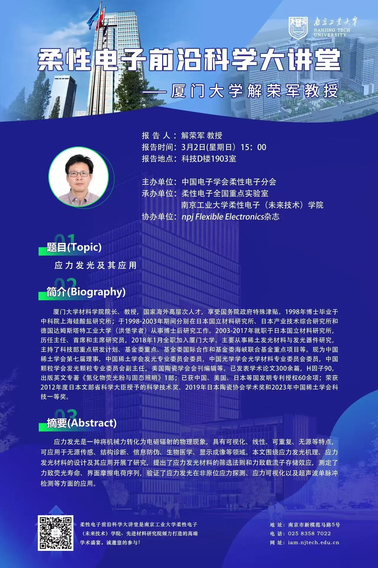 【柔性电子前沿科学大讲堂】第24期:厦门大学解荣军教授