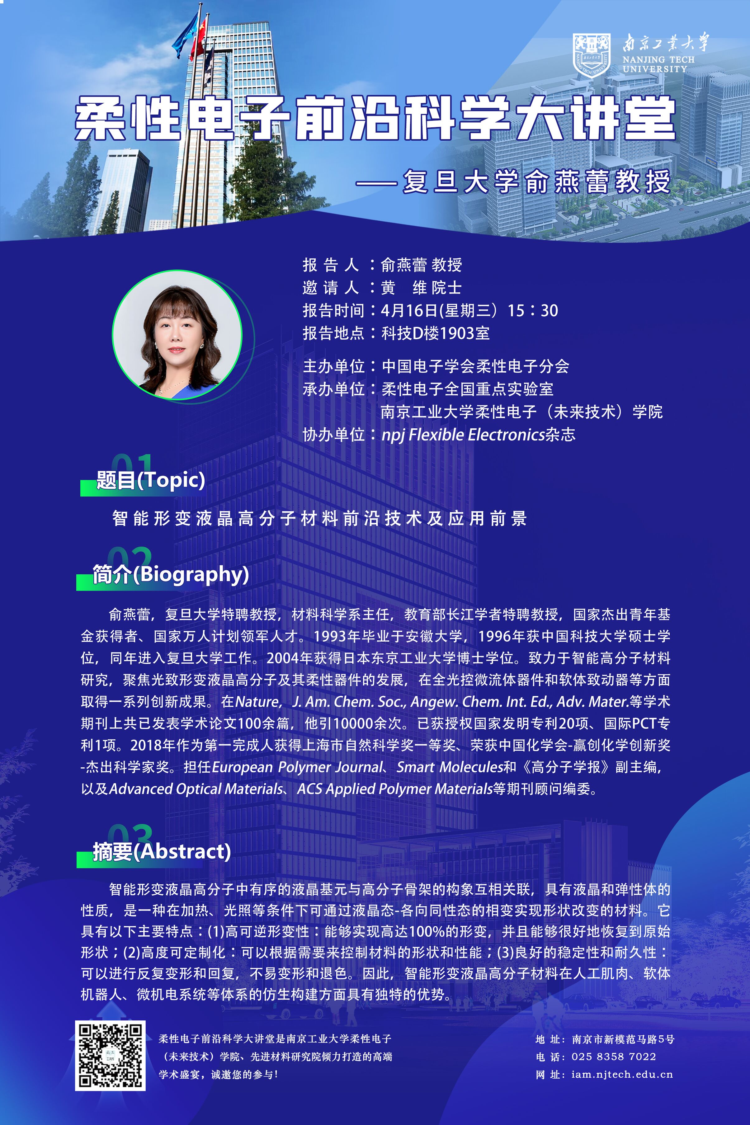 【柔性电子前沿科学大讲堂】第26期:太阳成集团tyc俞燕蕾教授