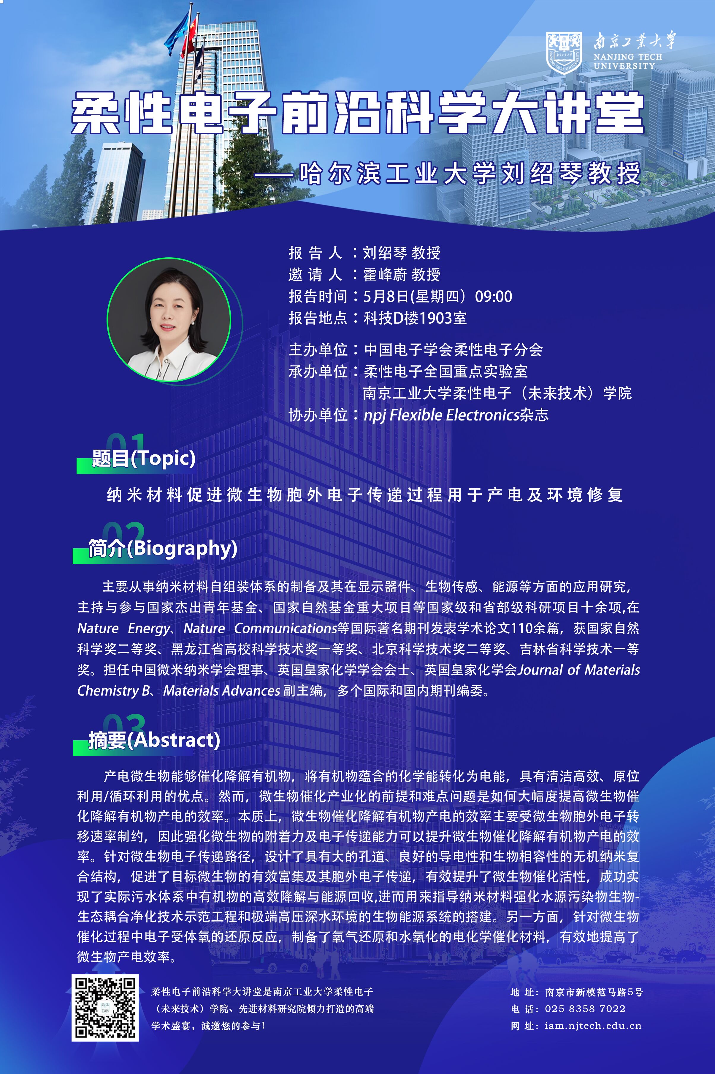 【柔性电子前沿科学大讲堂】第27期:哈尔滨工业大学刘绍琴教授