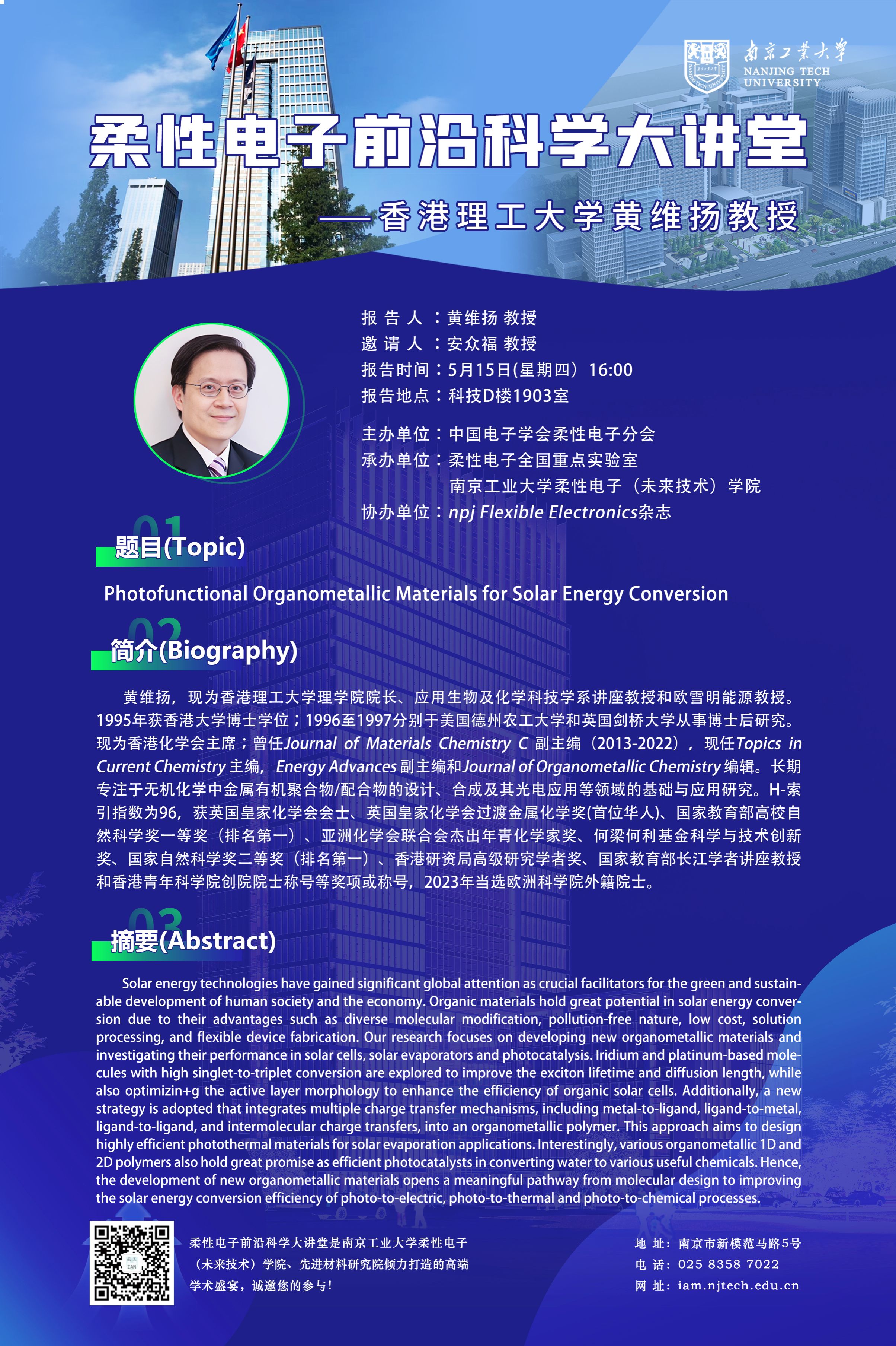 【柔性电子前沿科学大讲堂】第28期:香港理工大学黄维扬教授
