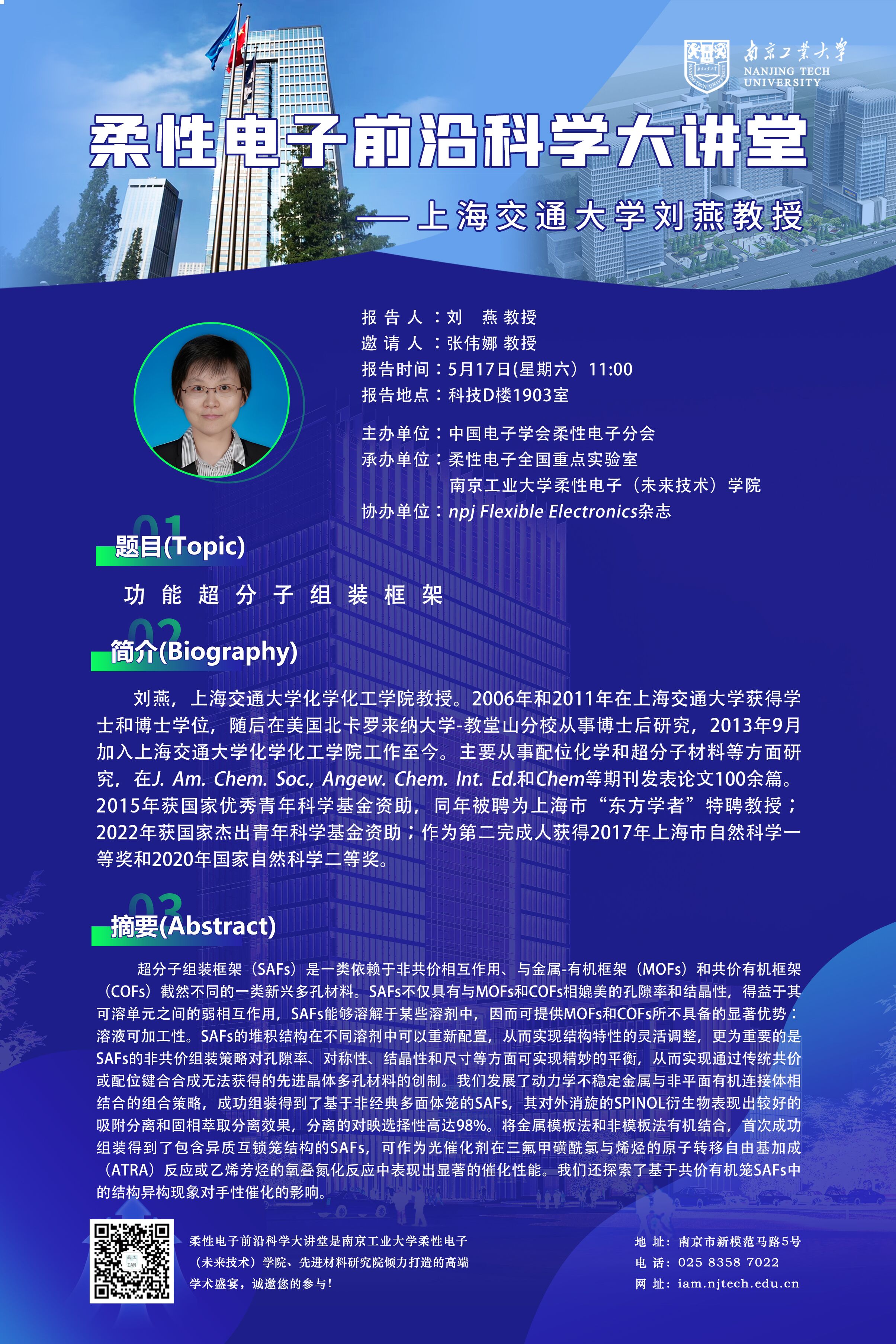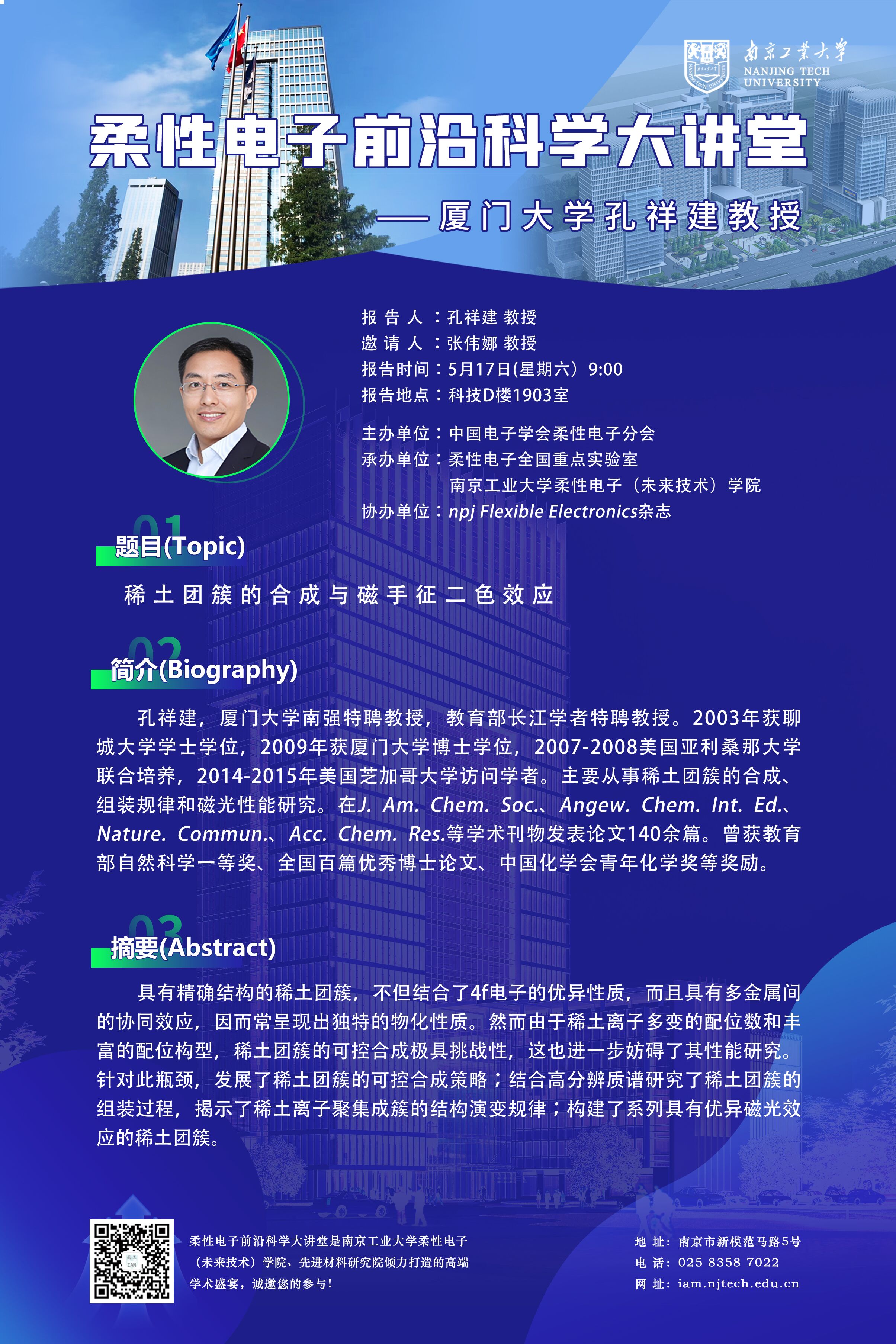 【柔性电子前沿科学大讲堂】第31期:厦门大学孔祥建教授,第32期:北京理工大学冯霄教授,第33期:上海交通大学刘燕教授