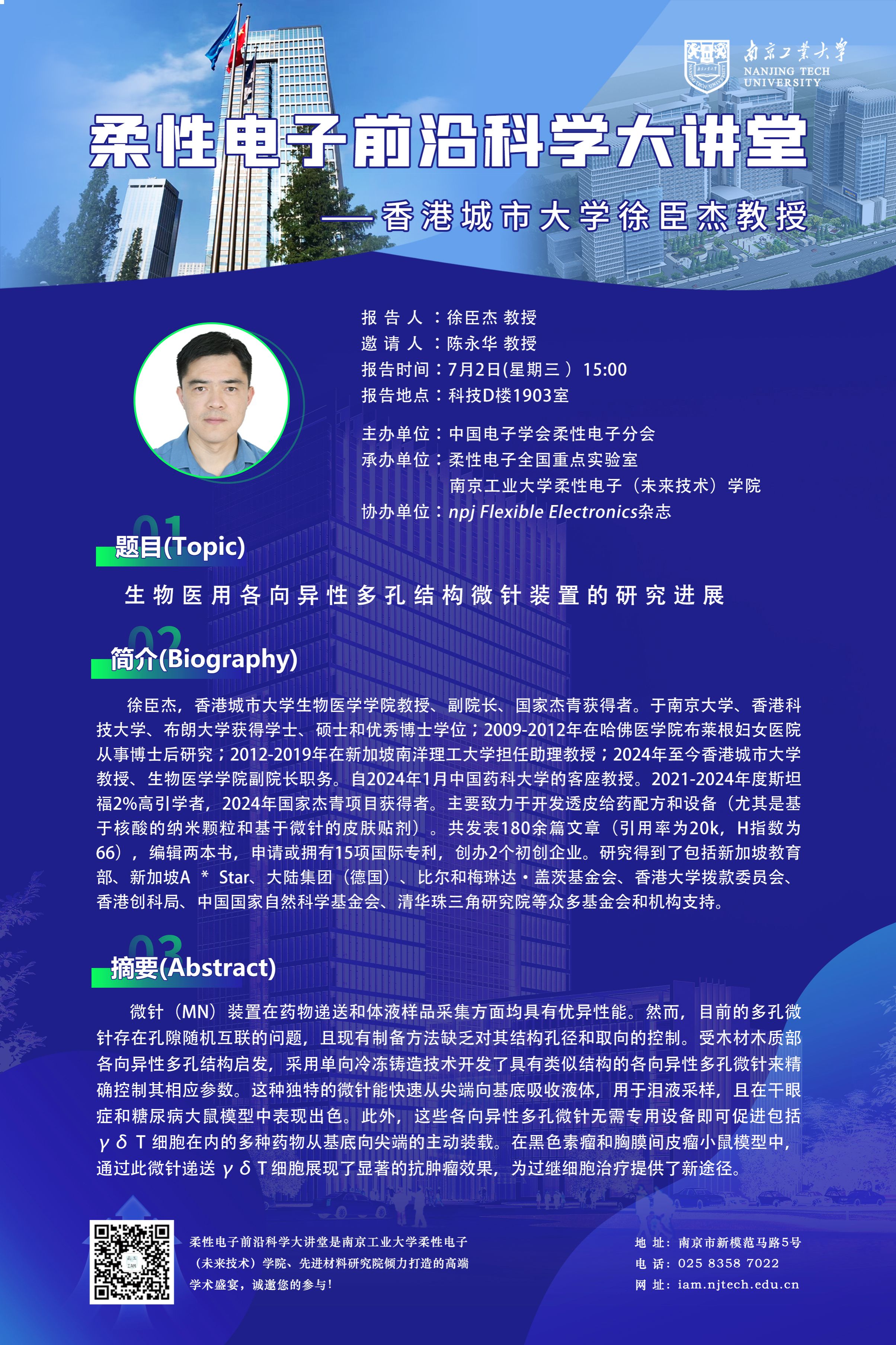 【柔性电子前沿科学大讲堂】第36期:香港城市大学徐臣杰教授